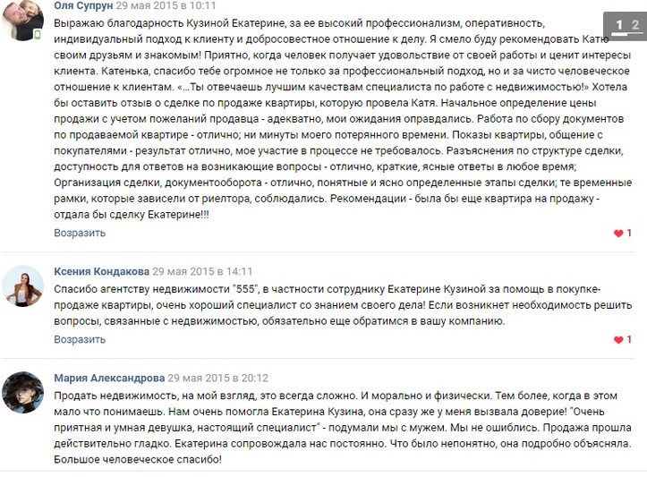 На этой странице опубликованы реальные отзывы клиентов - как положительные, так и отрицательные. Чтобы оставить свой отзыв о работе риэлтора, вам нужно пройти авторизацию,получив короткое смс сообщение. Публикация прикрепленных документов остаётся на усмотрение портала.
