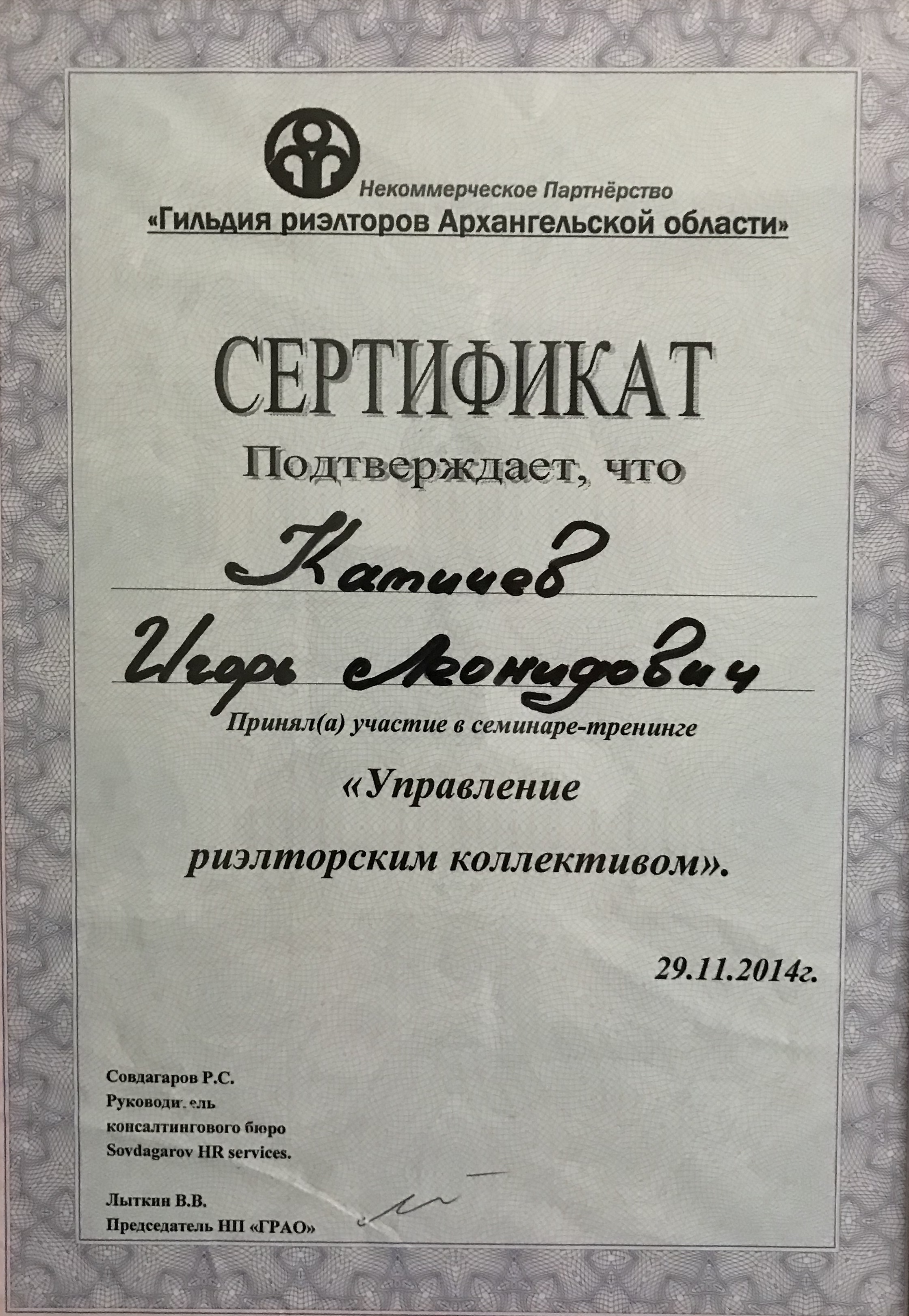 Выражаю благодарность Катичеву Игорю за грамотное и оперативное оформление сделки по недвижимости . Хочу отметить профессиональный подход , вежливость и пунктуальность.